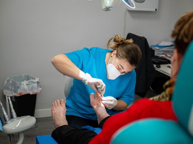 Elimina durezas, callosidades e infecciones ungueales. Es la base del tratamiento podológico regular y previene afecciones más graves.